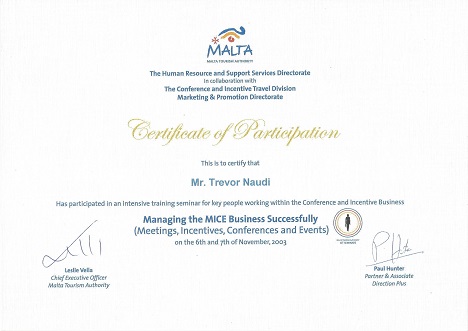 A long stint in the Tourism sector led Trevor to handle various events of different sizes. The experience gained through the handling of Meetings, Incentives, Conferences & Events for local as well as foreign clients, means that any event of any size can be organised in the most professional manner.
